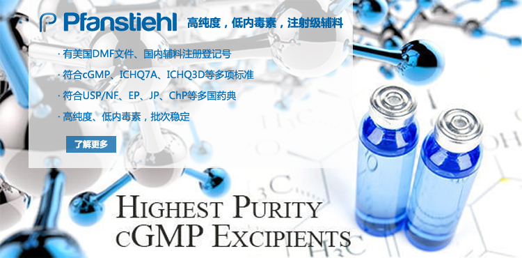 “熱烈祝賀Pfanstiehl的注射級甘氨酸Glycine(G-140)喜獲CDE登記號F20250000403, 這是Pfanstiehl產品獲得的第18個CDE登記號!”甘氨酸在醫藥輔料制劑中應用廣泛,, 可作為緩沖劑,增溶劑,穩定劑等,具有諸多優勢。Pfanstiehl秉承一貫高品質理念,為滿足全球生物制藥行業對于高品質甘氨酸的需求,隆重推出的注射級甘氨酸Glycine (G-140), 具有超高純度,超低內毒素,超低金屬殘留的特點,單獨檢測29種金屬離子,并且新增DNA,RNA,DNA酶,RNA酶和脂肪酶,亞硝酸鹽等多項質量指標的檢測,符合多國藥典規定(USP, EP, BP, JPE, ChP),可用于生物治療性藥物和疫苗的生產。產品信息:· 產品名稱:Glycine, High Purity, Low Endotoxin, Low Metals, USP, EP, BP, JPE, ChP (G-140)· 中文名稱:甘氨酸· 分子式:C2H5NO2· 分子量:75.07 g / mol· CAS號:56-40-6· 產品貨號:G-140產品特點: · 超高純度,超低內毒素,超低微生物含量,超低金屬雜質殘留· 質量指標新增DNA,RNA,DNA酶,RNA酶,脂肪酶和亞硝酸鹽檢測· 符合多國藥典:USP, EP, BP, JPE, ChP· 符合ICH Q3D標準· 符合GMP標準· 已獲DMF和CDE登記號 產品應用:· 緩沖劑· 穩定劑· 增溶劑如果您對Pfanstiehl注射級別Glycine G-140感興趣,歡迎聯系Pfanstiehl 中國區代理商北京西美杰科技有限公司獲得如下詳細的產品概況說明文件和測試樣品。Pfanstiehl Inc.最新產品系列如下,歡迎聯系北京西美杰科技有限公司獲取100g裝免費樣品。北京西美杰科技有限公司為Pfanstiehl中國代理,為客戶提供完善的技術支持與售后服務。歡迎撥打西美杰客服電話400-050-4006或者登陸網站www_xmjsci_com.lvzhoushunjing.com了解更多信息。 更多>